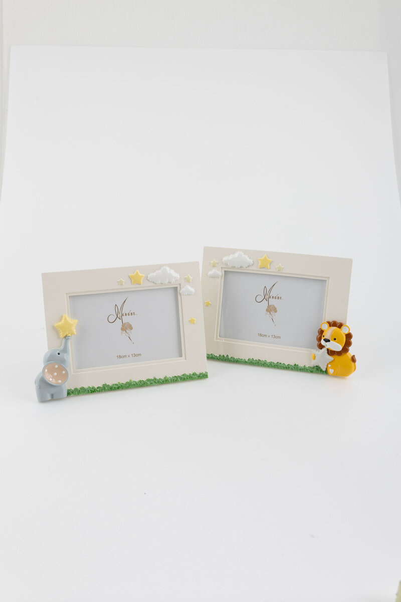 Portafoto grande in resina con animali. 2 soggetti assortiti